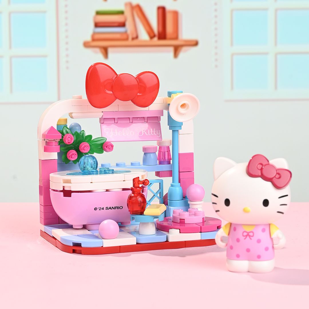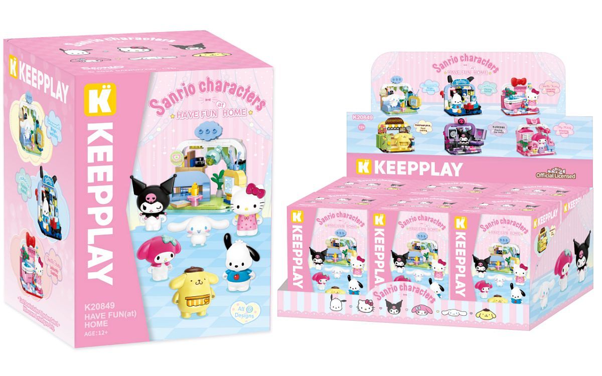 這款三麗鷗積木盲盒一共有六個角色現身,每個角色都是不同的居家情境!凱蒂貓Kitty正準備著在浴室泡澡、布丁狗在廚房裡製作餐點、愛漂亮的美樂蒂在房間打扮、帕恰狗在遊戲間裡玩遊戲、大耳狗在客廳沙發上悠閒追劇、有個性的酷洛米在視聽室裡玩音樂!