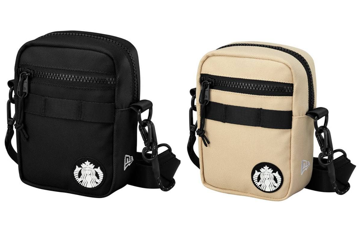 這系列的隨身小包推出兩個色選:好搭配的卡其大地色系、以及永遠不會出錯的黑色,包身正面是星巴克女神LOGO、New Era的經典LOGO則在包包側身,背帶可調,可隨心情調整成側背或斜背的長度,背起來俐落有型,這系列包款的售價是2,490元。