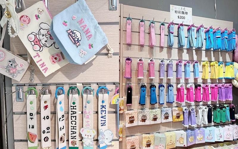 「 NANA’S 娜娜家的夢幻基地」 就位於東區地下街10號及12號出口中間,超適合姊妹們逛街時順道去探店!燙布貼的圖樣從可愛的卡通人物、英文字母、韓文字、日文字都有提供,超多圖樣可以自由搭配出專屬於妳自己的可愛單品。店內除了各種顏色的飄帶還有提供24色帆布袋、12色束口袋、4色筆袋、小帆布袋、杯套...等等,都可以做客製!不管是自用還是拿來送禮都超適合!店內也還有販售其他的可愛選物,趕快約上好姊妹去逛逛吧!