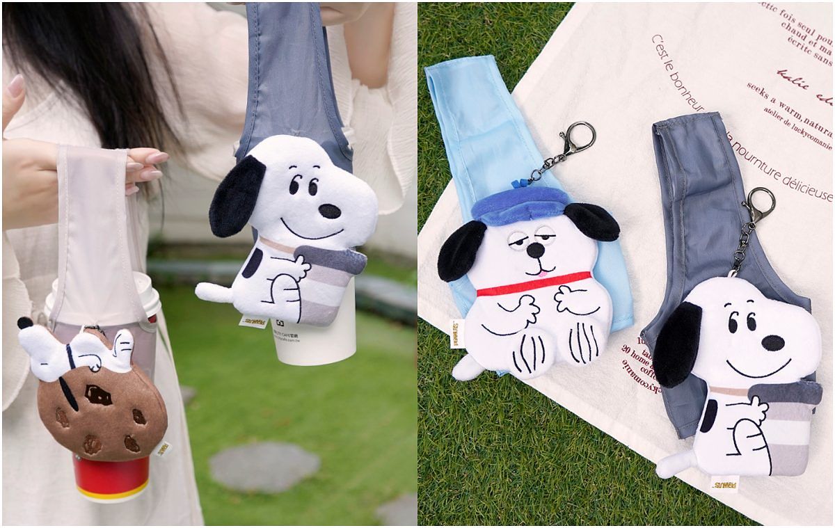 一共4款的絨毛飲料提袋,打開前與一般玩偶吊飾無異,打開後變身超實用的飲料提袋,可愛度爆棚,實用度也超群!