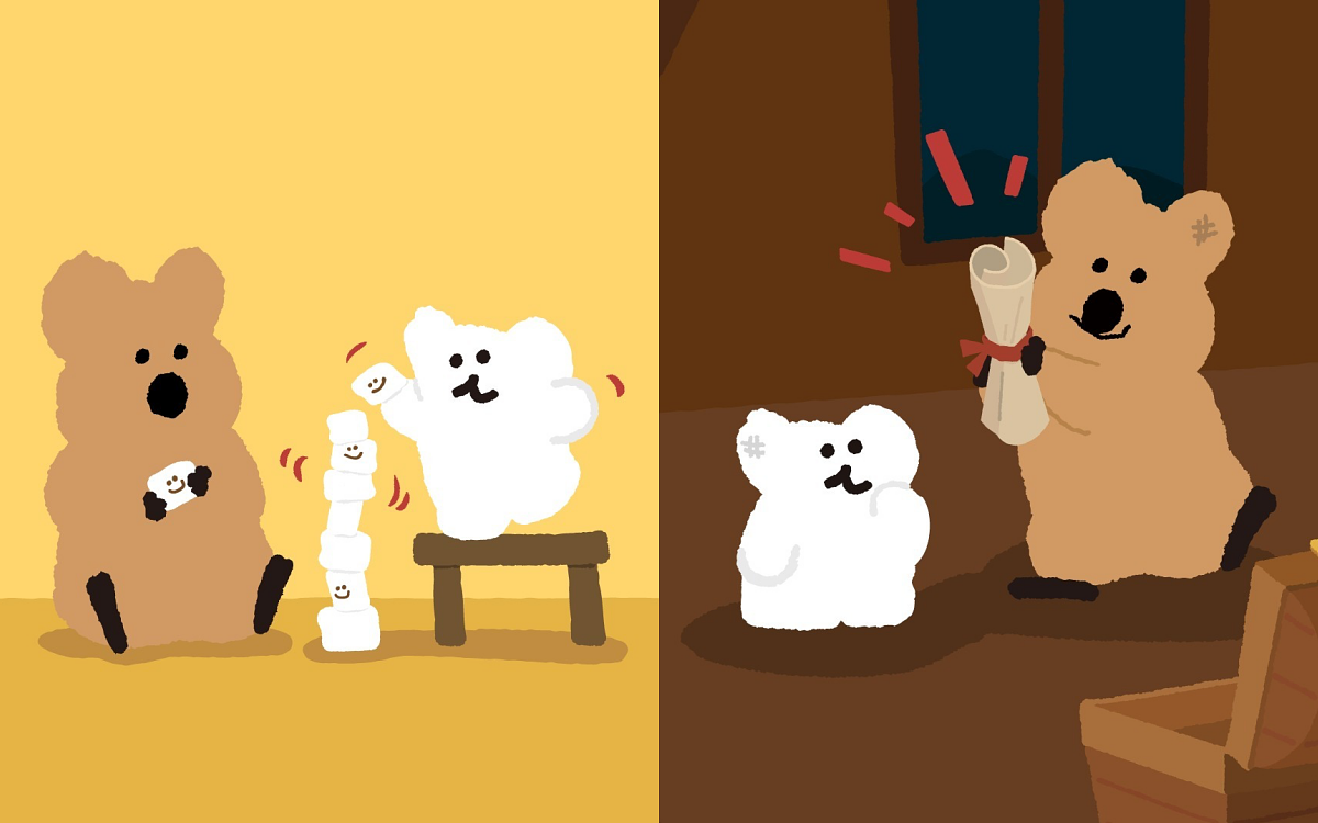 DINOTAENG 以「QUOKKA」為主角,打造出 Marshville 這個可愛的世界,描繪住在 Marshville 村莊的 Marshville 居民們發生的日常生活故事,BOBO 和 MARSH 等好友,賦予 DINOTAENG 生命力與活力,每位都有迷人魅力,療癒插畫風格加上角色傳遞正能量設計風靡全球。