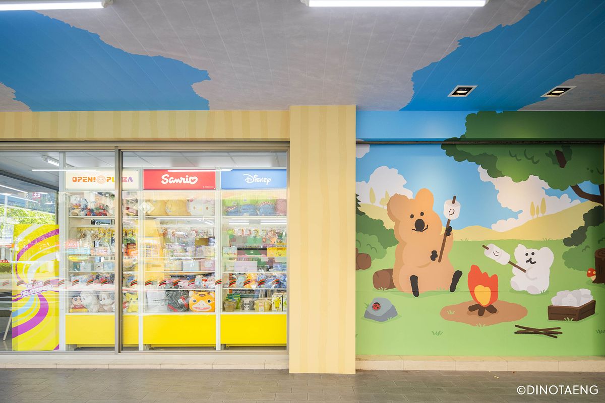 7-11 日前推出「DINOTAENG」的全新主題週邊系列便引發粉絲搶購秒殺,7-11「開源門市」推出全台首間 DINOTAENG 主題店,以療癒的畫風打造門市風格,各區從白天到黑夜都有不同經典畫面,還有超可愛的 QUOKKA 與 BOBO 在門口迎賓。店內牆上到天花板也可以看見矮袋鼠的蹤影,簡直萌翻!