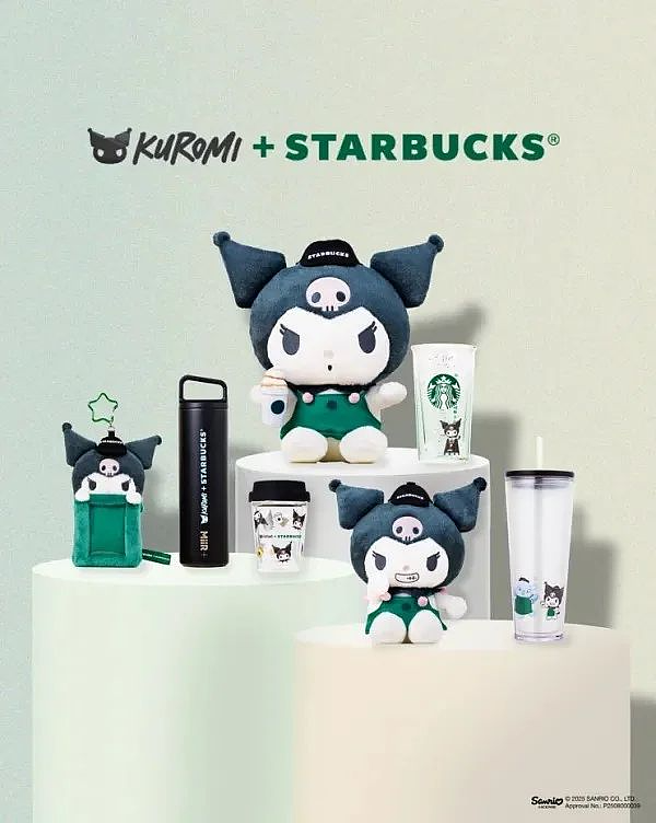這次星巴克與酷洛米聯名第一波商品包含:20oz MiiR 不鏽鋼保溫杯、24oz 冷水杯、10oz 雙層玻璃杯配杯蓋、絨毛公仔卡套及大小咖啡師造型娃娃。同樣於10月21日香港的星巴克實體門市及線上同步販售。