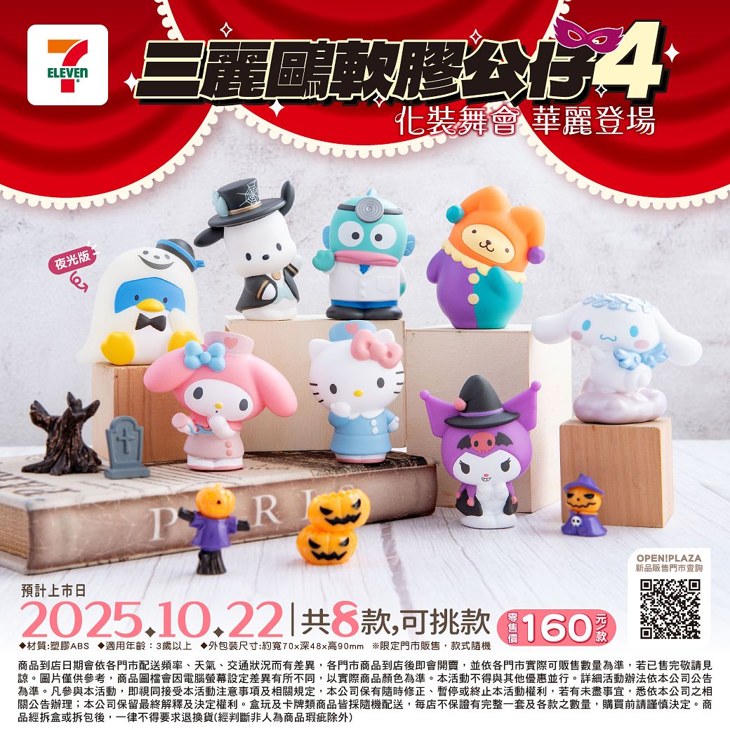 喜歡三麗鷗的粉絲們,錢包又準備失守了!7-ELEVEN 繼推出線條小狗萬聖節盲盒後,這個10月再度推出三麗鷗超萌萬聖節公仔系列,一共八款角色、八款造型亮相,甚至是可挑款,粉絲們還不通通拿下!