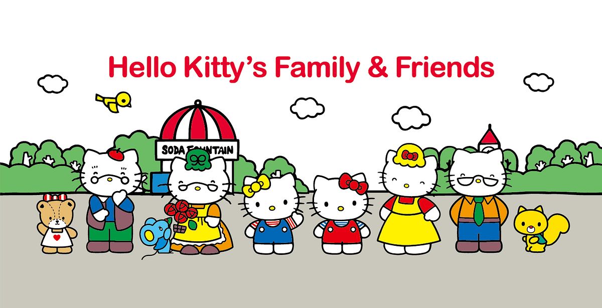 Hello Kitty 來自一個充滿愛的家庭。爸爸是紳士的 George White,媽媽是溫柔的 Mary White,還有慈祥的爺爺奶奶,以及前面提到的雙胞胎妹妹 Mimmy。每位家人都有自己的故事,讓 Hello Kitty 的世界更真實、更有溫度。