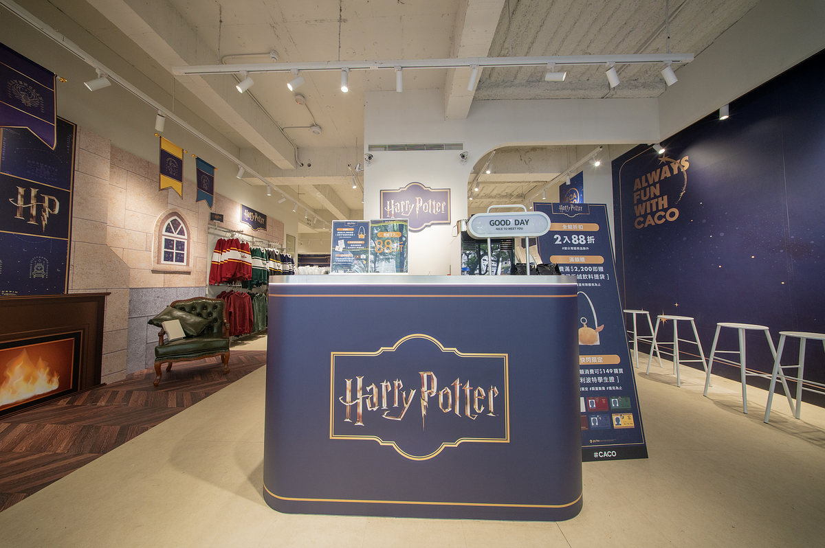 於 CACO 台北東區敦南店、台中一中門市、台南南紡購物中心、高雄統一夢時代購物中心同步設立四間快閃,除了豐富的服飾及周邊配件外,最大的亮點則是不同主題的場景打卡牆,帶粉絲回憶哈利波特電影中的經典橋段,不但能拍照留念,現場更有特殊學院活動和限定會員好禮!