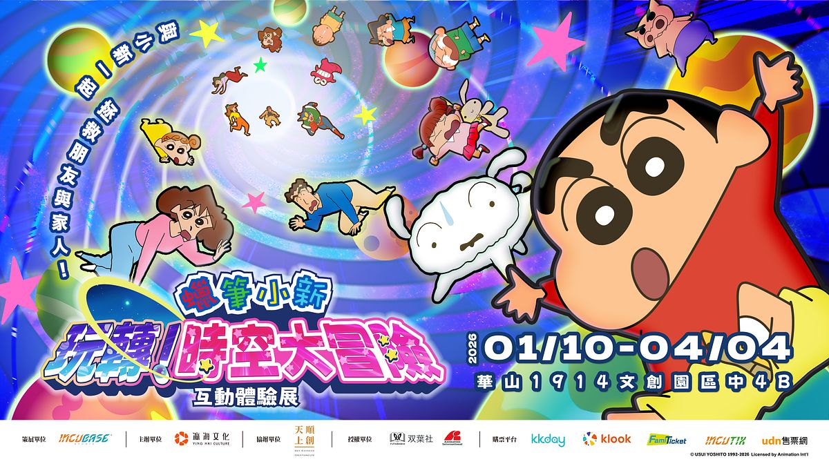 席捲全球 35 年的日本原創漫畫《蠟筆小新》即將再度掀起熱潮!「蠟筆小新『玩轉!時空大冒險』互動體驗展」首度登陸台北華山 1914 文化創意產業園區!現場不僅打造十大主題展區重現《蠟筆小新》經典場景,更迎來高互動性沉浸式體驗,小新粉將有機會與「春日部防衛隊」攜手,展開一場驚險刺激的跨時空救援冒險!蠟筆小新粉絲們絕對要衝!