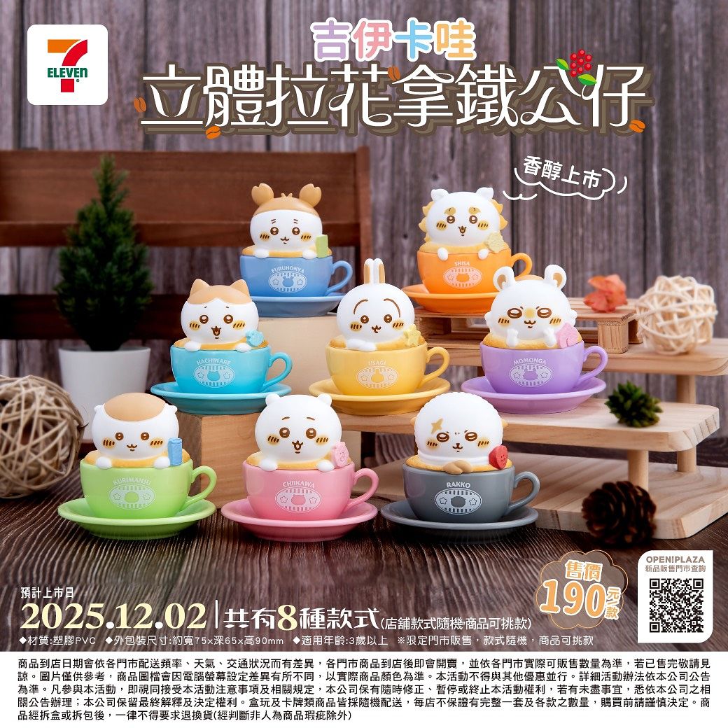 吉伊卡哇粉絲準備手刀搜集!7-11 近期推出全新「吉伊卡哇立體拉花拿鐵」公仔,一共推出8款造型角色,以療癒日系風為靈感,將這群小夥伴化作可愛的迷你咖啡拉花造型。療癒感濃度直接拉滿,無論放在桌上、陪你喝咖啡、當收藏展示,整個可愛度都爆表!