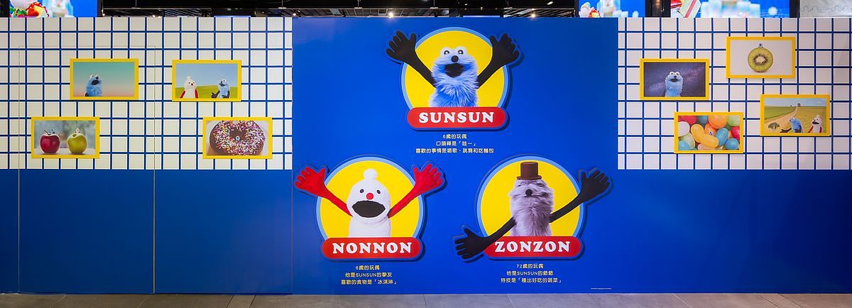 帕比順順 PUPPET SUNSUN 推出超吸睛五大打卡區,邀你一起走進順順的趣味世界。首先推特大號迎賓牆「順順歡迎你」,順順從牆邊探出頭來,用最招牌的大眼神迎接你,走入展區,互動感十足的「積木堆堆樂」以大型彩色積木呈現,接著看到走近就像被抱住的「順順抱抱」,讓粉絲拍出最療癒的擁抱照,旁邊的「順順揮手」則以伸手打招呼的姿態呈現,怎麼拍都像順順向你say hi。最後在「大集合」牆面,SUNSUN、NONNON 及 ZONZON 三位主角一次亮相,整面藍色主視覺是不可錯過的合影最佳點位。五大打卡區趣味與療癒度通通爆表!