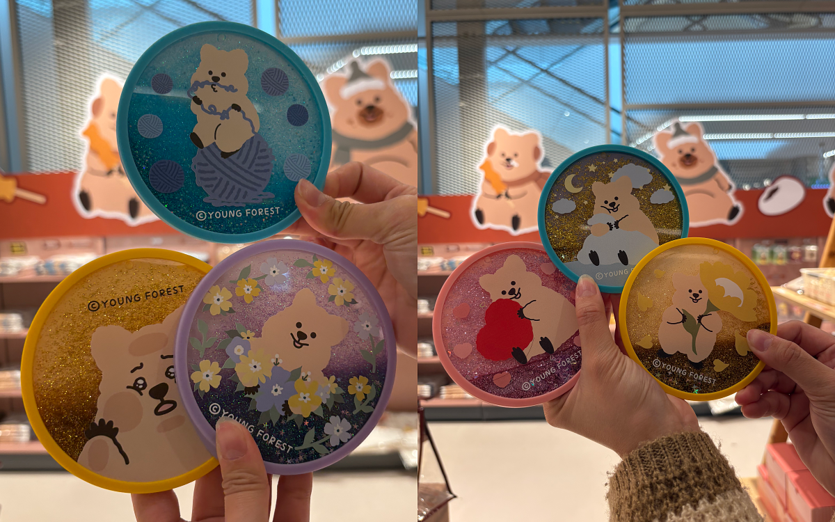 只要給餅乾,馬上就能變成好朋友的勾卡KKOTKA最喜歡吃零食,四款拿著甜甜圈、彈著吉他及吃著西瓜等超可愛「陶土杯墊」,看著勾卡KKOTKA吃也開心!上班也要保持最佳狀態,用抱著毛線球或開心洗澡等四款「隨身鏡子(大)」補妝絕對會被同事問爆。溫潤木紋刻劃出的「木杯墊」以勾卡KKOTKA的各種日常模樣,從翹屁屁、健身到抱著大愛心等四款設計,每款都洋溢暖心氣息。沒事多喝水!五款勾卡KKOTKA「冷水瓶」從健身、送愛心及手握太陽花等超萌圖案絕對是搶手禮物。最後讓棕、藍、綠為底色的「隨身鏡子(小)」,以舉手、生氣或閃閃發亮的勾卡KKOTKA陪你迎接聖誕派對吧!