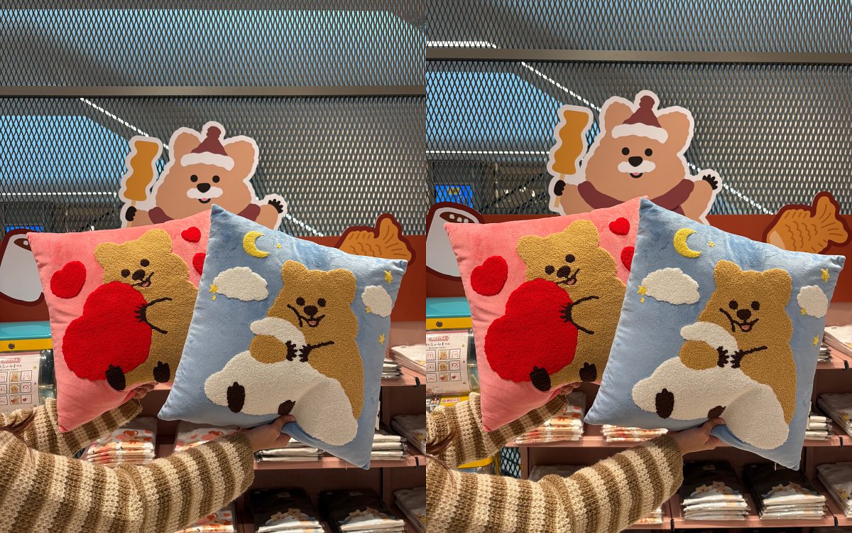 在快閃店遠處就能看到高達200公分的充氣玩偶「愛心勾卡KKOTKA」,抱著紅心的勾卡KKOTKA萌力爆發,光是看到就感受到快樂氛圍呢!緊接著看到一字排開的「勾卡KKOTKA吃播秀」,開心地吃著各種美食,從關東煮、鯛魚燒到巧克力,而下排的勾卡 KKOTKA 則是忙著推著購物車及搬包裹,再往旁邊一看,「主視覺」上嘴饞的勾卡 KKOTKA 正在吃著香噴噴的蕃薯,各種呆萌模樣療癒了全場,快來找這些超萌的短尾矮袋鼠們拍照,做為今年冬天最幸福溫暖的一組照片!