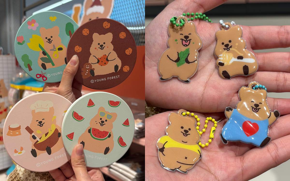 讓勾卡KKOTKA當你的幸福夥伴!從健身、翻跟斗到準備入睡等六款萌翻天「T-shirt」,每款都簡單百搭,是最安全的交換禮物品項,不論抽到誰都能穿,這禮物完全沒可能失敗。防止桌面濕噠噠必備超療癒「流沙杯墊」共六款,有抱愛心、玩毛線球及被花朵圍繞等超可愛圖案,抽到肯定一直拿在手上把玩。三款萌萌勾卡KKOTKA「鑰匙圈」有吃餅乾、玩毛線球與抱愛心設計,掛在包上瞬間就能成為全場焦點。以向日葵、野花、星星及莓果圖案打造的「飲料提袋」實用又吸睛,最適合冬日買杯熱飲溫款自己。兩款咖啡棕與粉嫩色系「針織包」,勾卡KKOTKA揮手與回頭微笑模樣超討喜,可愛程度會讓人懷疑這是不是交換禮物預算放太高,拆開瞬間直接變成全場最想抽到的禮物!