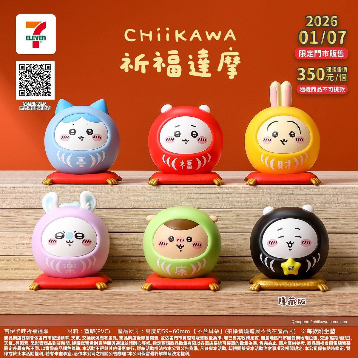 7-11 吉伊卡哇「祈福達摩公仔」盲盒來了!全套5+1款,滿滿祝福陪你好運開啟新的一年!