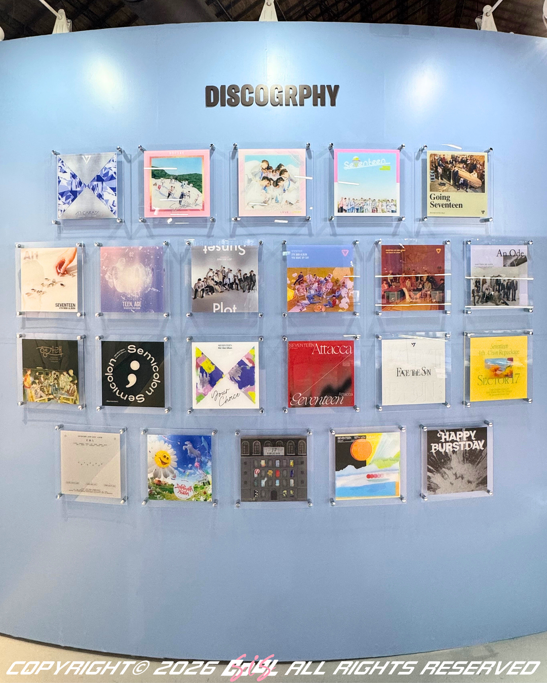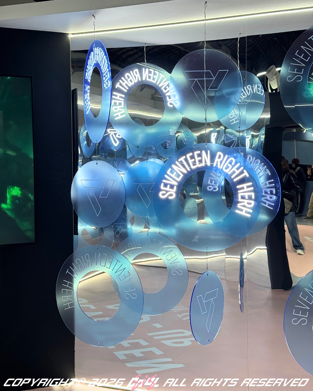 現場規劃多項互動體驗內容,讓粉絲能更深入感受 SEVENTEEN的音樂與視覺魅力。包含以天花板垂吊裝置打造的拍照區,以及運用鏡面設計構成的沉浸式空間,讓來訪粉絲能自在留下紀念影像;同時設有媒體播放區,播放多支SEVENTEEN 音樂錄影帶,提供結合音樂與影像的觀賞體驗。