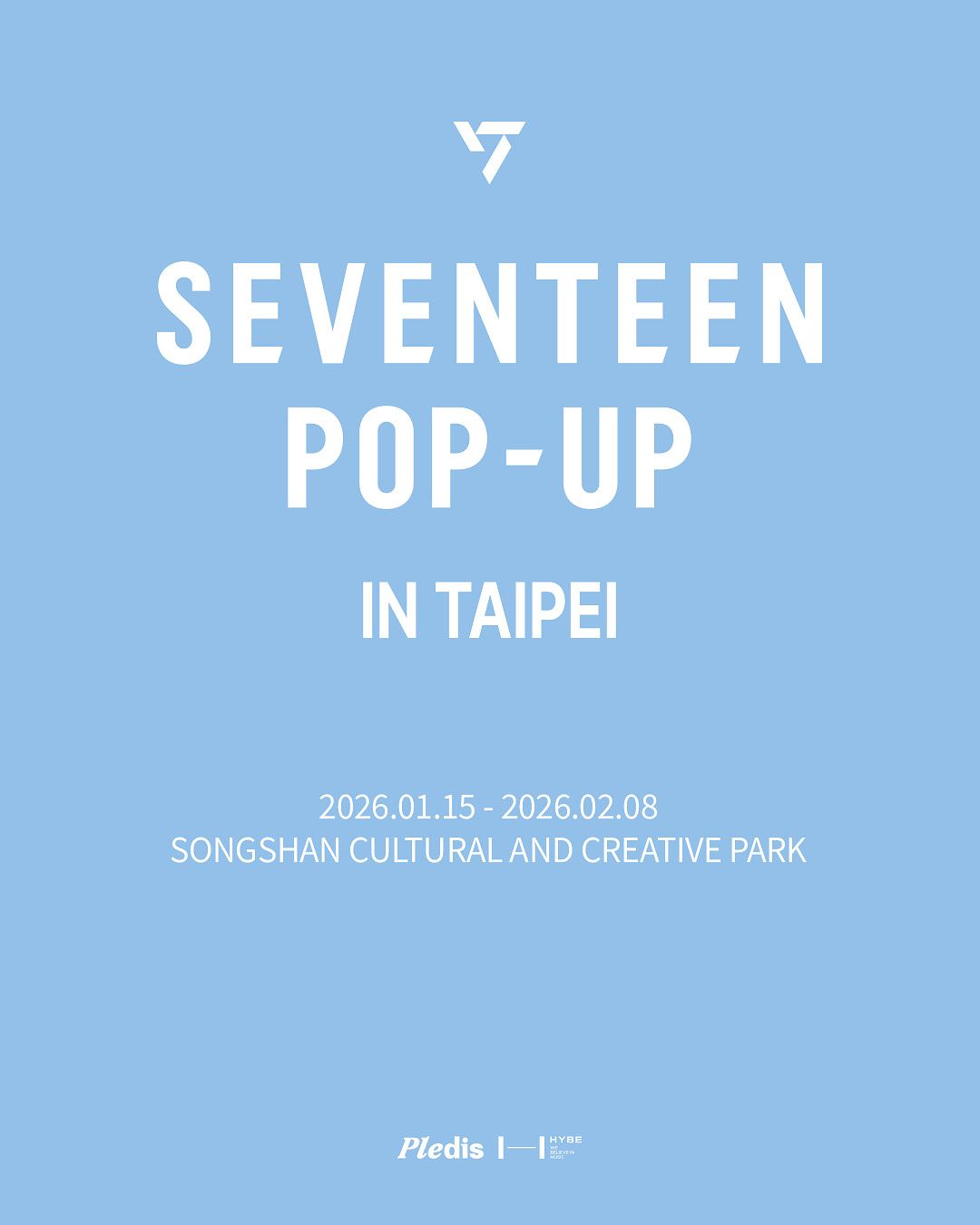 「SEVENTEEN GLOBAL POP-UP in TAIPEI」於 1 月 15 日至 2 月 8 日在台北松山文創圖區盛大登場。本次活動不僅提供官方周邊商品.更打造能完整體驗 SEVENTEEN 世界觀與情感氛圍的沉浸式快閃空間。
