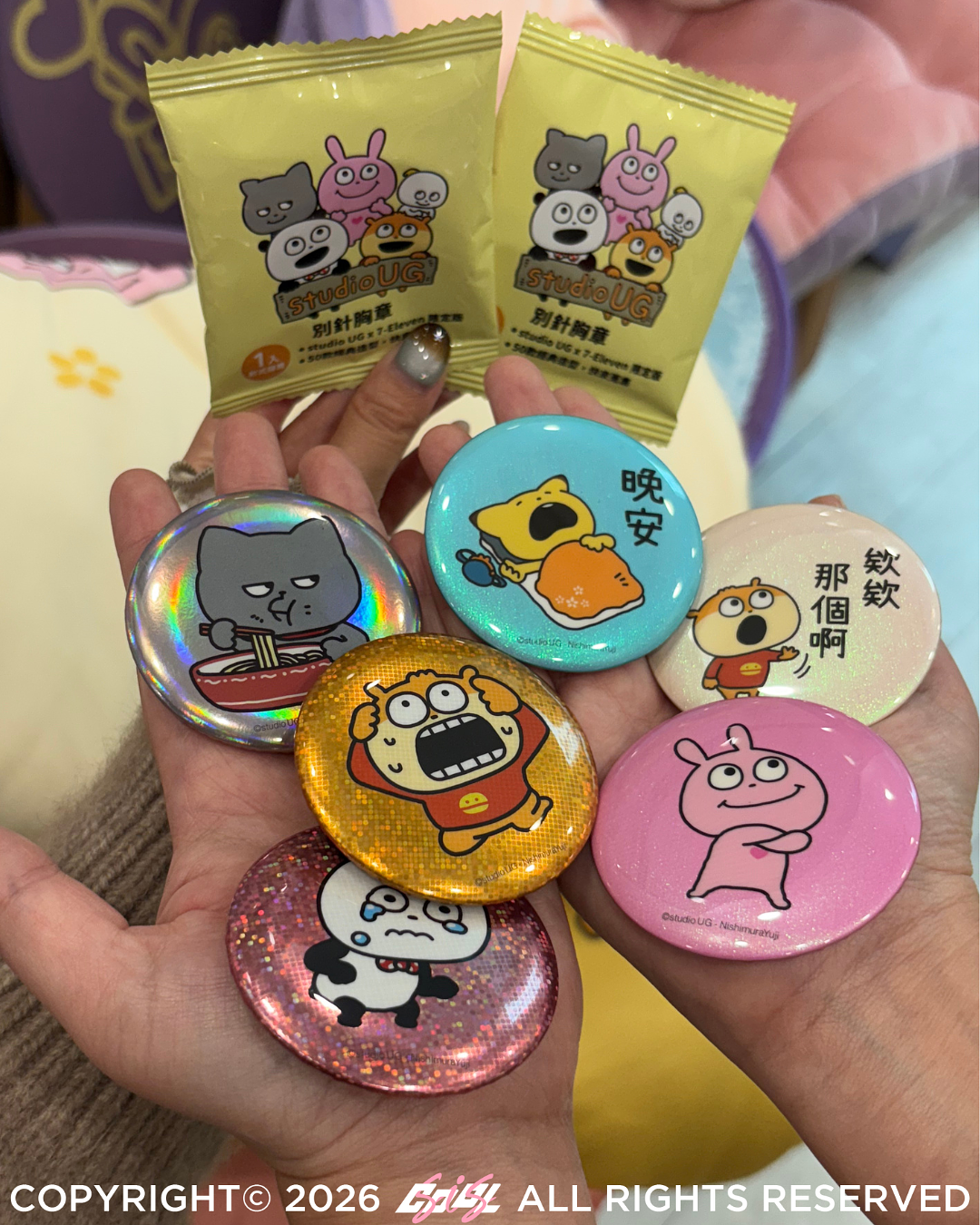 首選推薦「限量幻彩/雷射貼圖胸章」總共50款隨機胸章,蒐藏有包含「GOKIGEN PANDA 開心熊貓」、「KONEZUMI 小鼠」、「LOVE RABBIT 戀愛兔」、「WARUMENONEKO 壞壞貓」、「KANEDA KON 金田狐」等經典貼圖角色,胸章內還有不同的經典語錄,消費當筆加價購29元即可獲得隨機1款,隨著每日不同的心情更換!