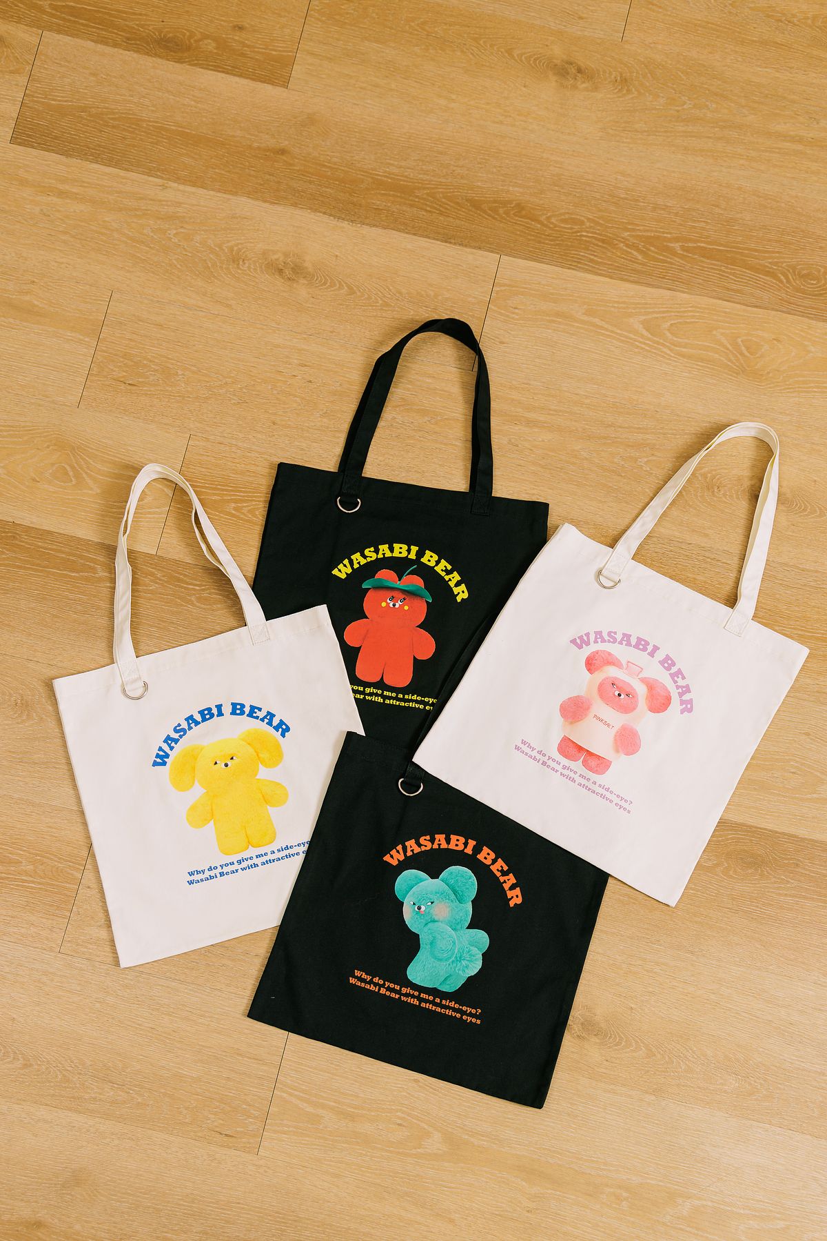 每天都想揹的時髦帆布袋為忙碌日常打造,筆電文件也能輕鬆放入薄帆布材質,輕巧不影響造型 Wasabi Bear 俏皮小熊印花,成為造型亮點搭配文字撞色,讓整體更有設計感。小鐵環細節掛上吊飾,輕鬆變化個人搭配百搭黑白色系,適合各種穿搭風格讓每一天的通勤路程都時髦可愛!
