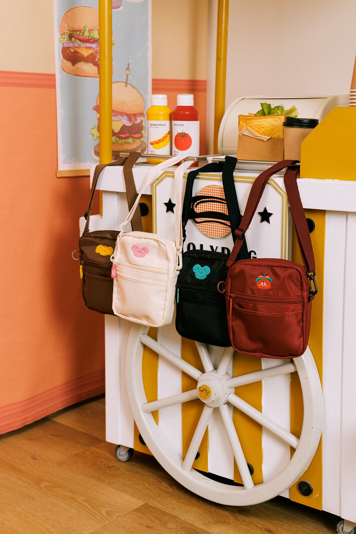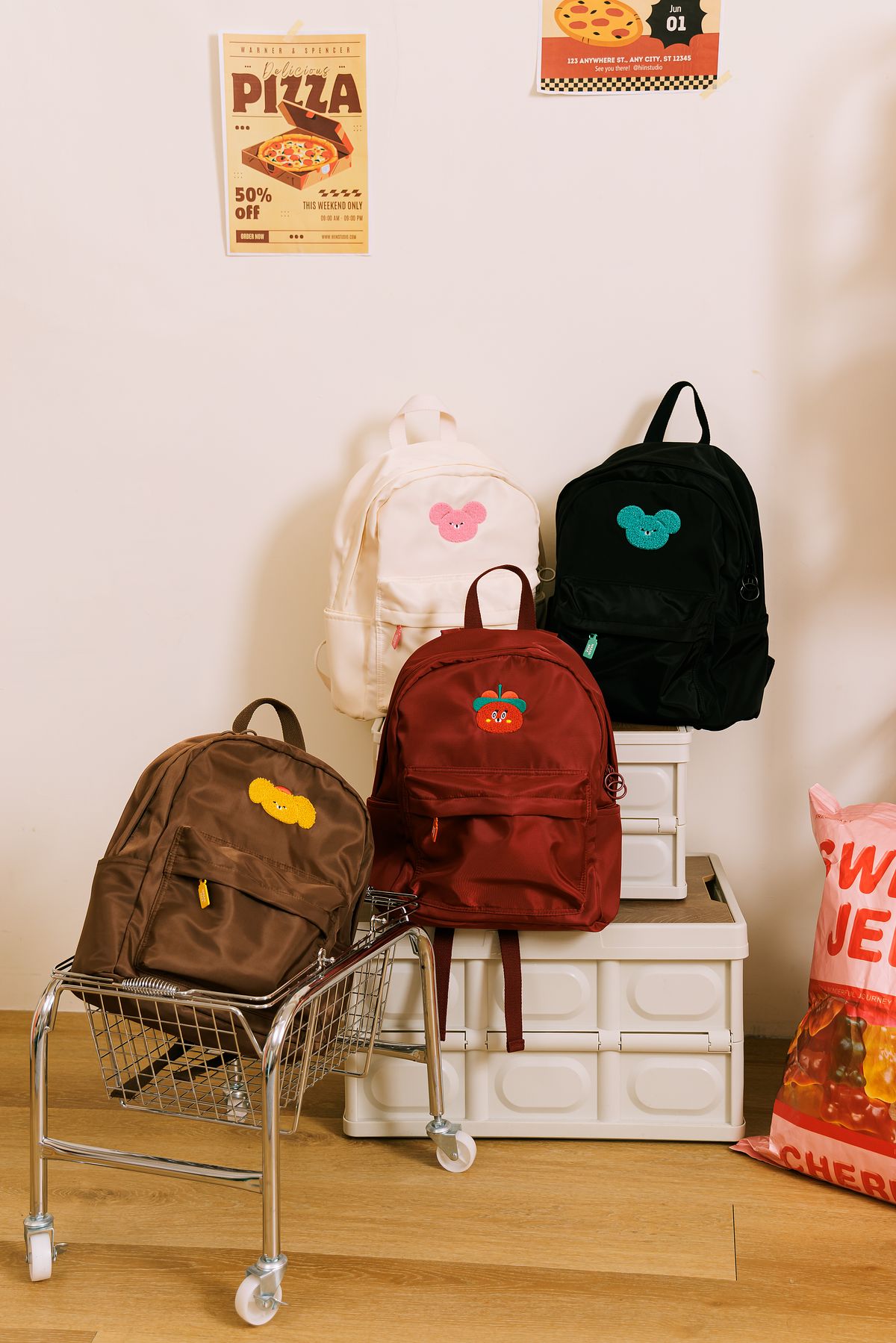 質感尼龍布材質,輕盈好背具備防潑水效果雙層拉鍊分隔設計,收納空間清楚好整理內裡採用格紋造型,低調中藏著設計感包身點綴芥末熊 / 黃芥末熊 / 粉芥末熊 / 辣椒醬熊,毛巾電繡圖案搭配調味料罐造型金屬烤漆拉牌,從正面到內裡細節都充滿療癒巧思可調式背帶,依身型隨心調整背包長度專屬甜酷女孩的時尚包款,實用與可愛一次擁有!