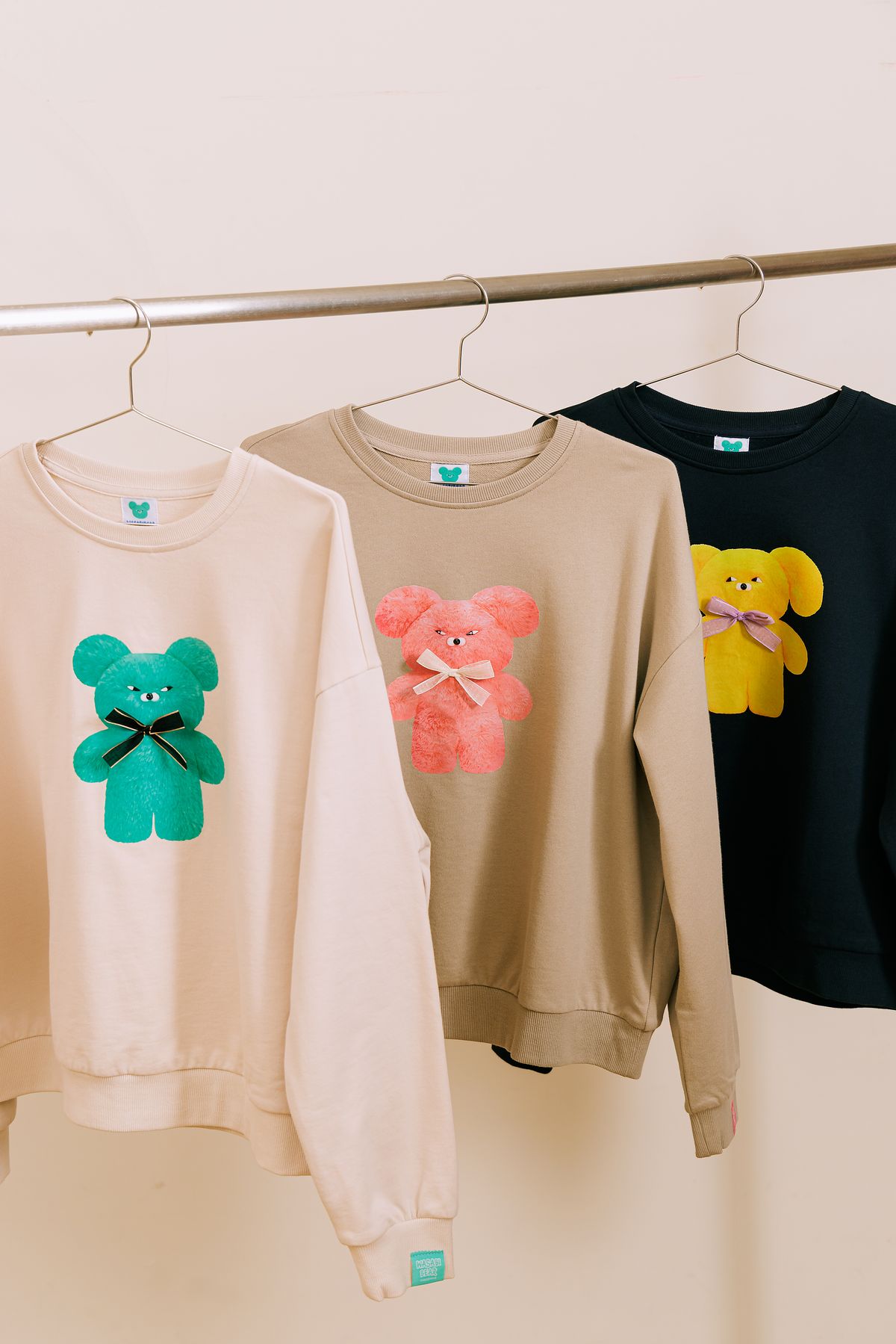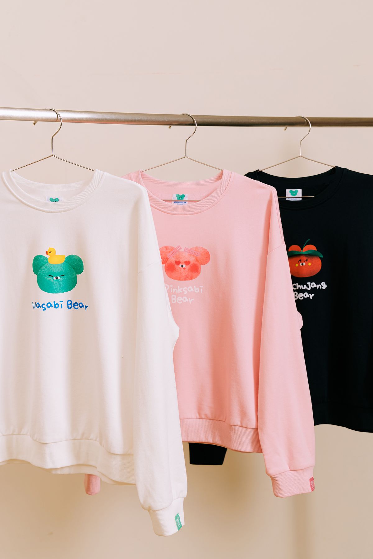 把 Wasabi Bear 的跩萌表情化成一件每天都想穿的療癒單品!芥末熊/黃芥末熊/粉芥末熊經典角色印花,萌表情療癒吸睛立體紗帶蝴蝶結,平衡可愛與質感親膚舒適棉面料,穿著柔軟不悶熱寬鬆版型剪裁,好穿修身不挑身形袖口細節布織標設計,點綴品牌質感無論單穿、內搭襯衫或外套疊穿都能讓 Wasabi Bear 成為穿搭亮點。