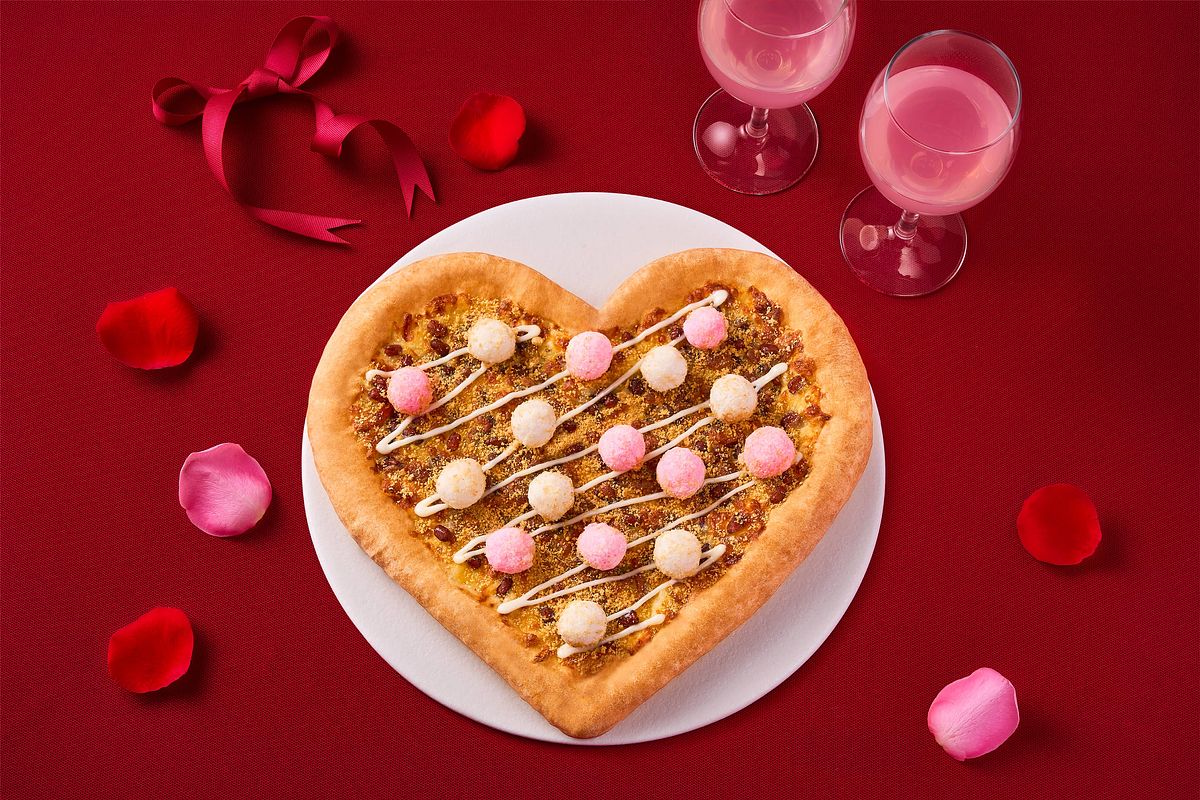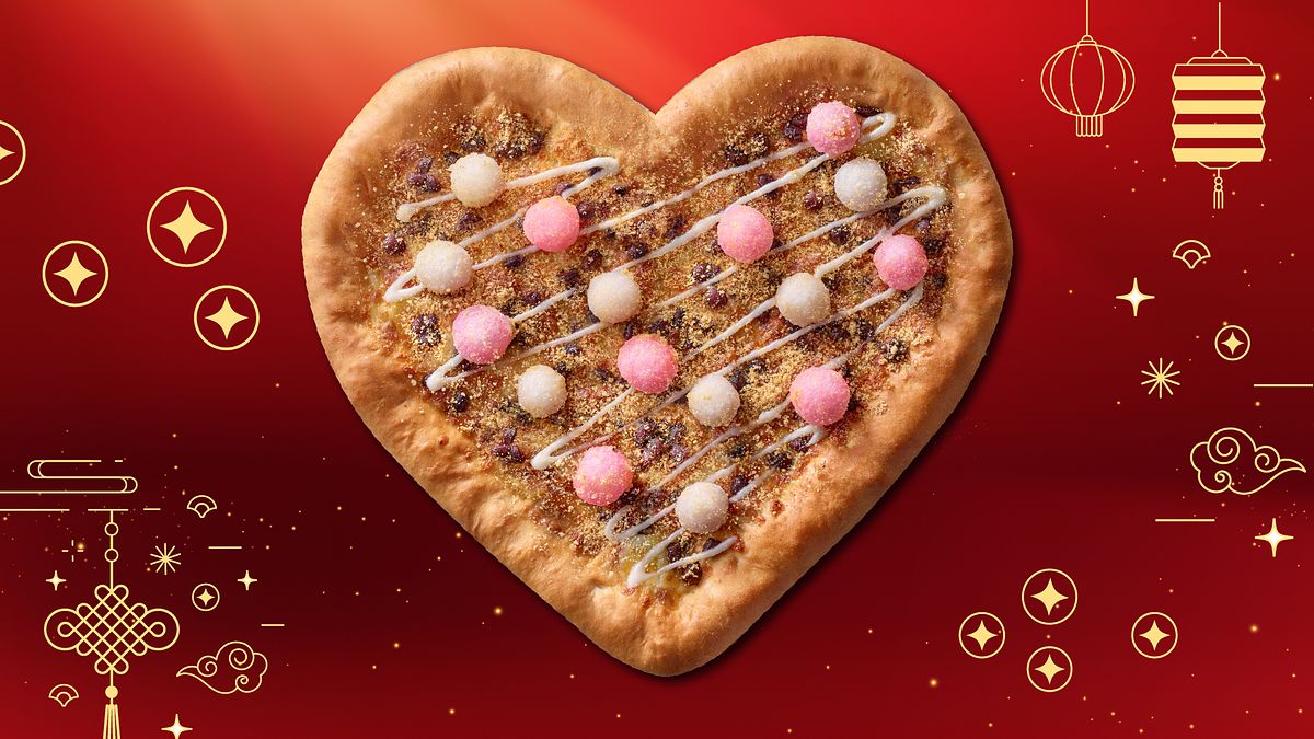 不只外型吸睛,「花好月圓愛心比薩」內餡更把台式甜點的靈魂端上桌!必勝客嚴選最新鮮的食材,用粉白相間、口感彈牙的炸湯圓作為口感核心,搭配色澤紅潤、質地綿密的紅豆以及充滿香氣的花生粉;這次更特別淋上醇厚煉乳,讓甜蜜滋味更升級!最後在莫札瑞拉起司的「牽線」下,鹹甜風味完美融合,每一口都嚐得到濃郁牽絲與幸福蜜意,象徵伴侶間如膠似漆的情誼!