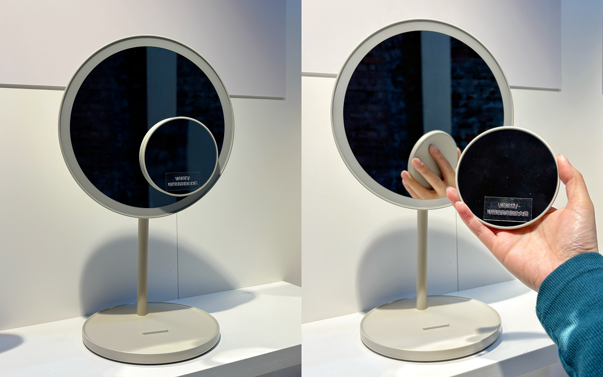 日本熱銷的桌上型 LED 化妝鏡台灣終於也要進了!採用接近自然光的 LED 燈源,提供三段式亮度調整,並附有磁吸式5倍放大鏡,如果不需要使用還能吸在鏡子後方,方便日常化妝使用。鏡子的底座還可擺放手機,讓化妝的過程也能追劇。