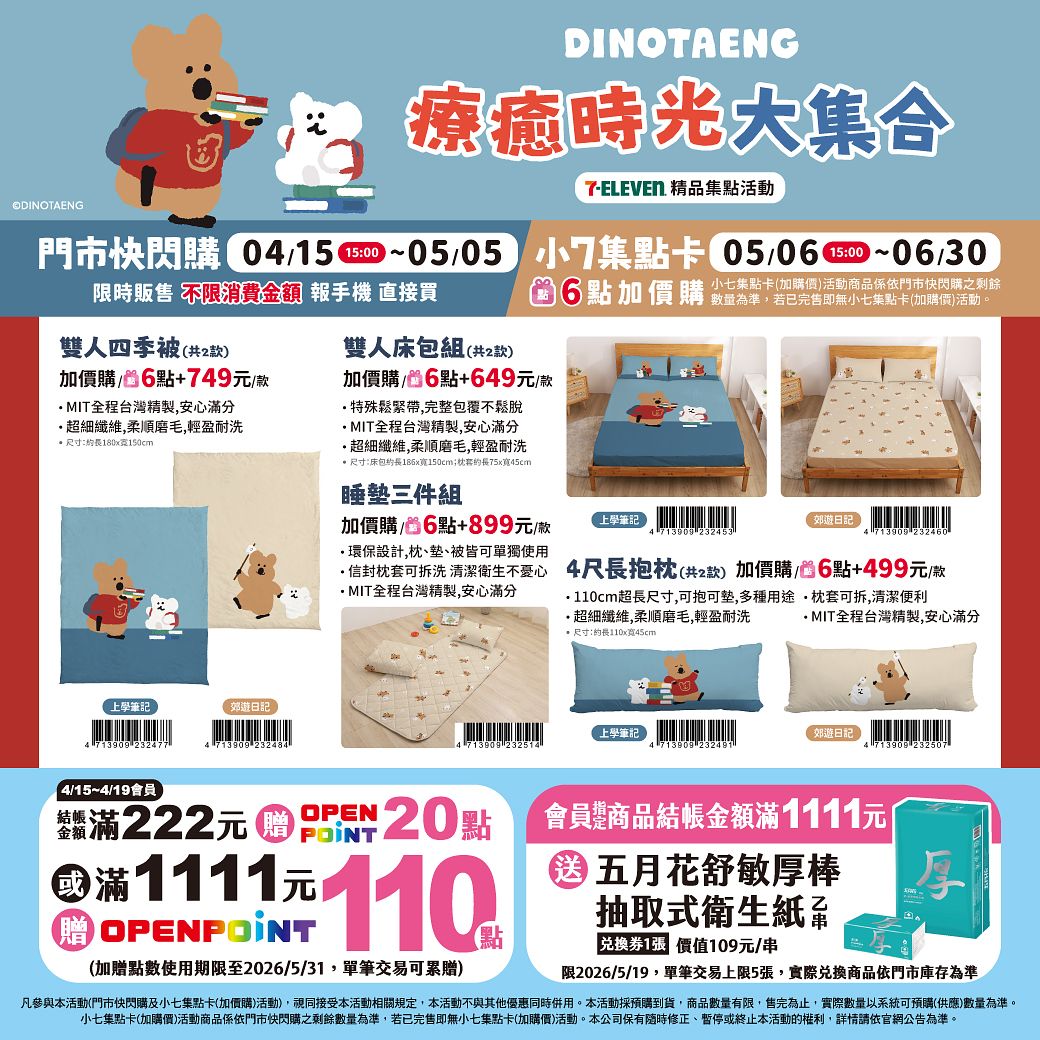 雙人床包組 6點+649元 / 4公尺長抱枕 6點+499元