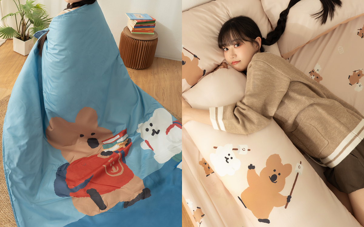 總共兩款超萌的矮袋鼠棉被,每天都會迫不急待要上床入睡吧!是 MIT 製造,超細纖維柔順磨毛,十分輕盈耐洗。