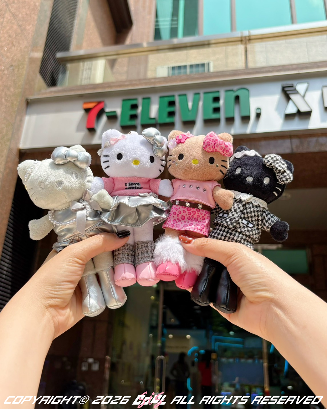 長腿 Kitty 為日本 Kiddy Land 與三麗鷗合作推出潮流公仔,推出至今爆紅不斷,將經典角色變成修長身形、多變造型與華麗的穿搭風格,與原本甜美可愛的形象興起另外一股反差萌蒐集熱潮。此次7-ELEVEN再度攜手三麗鷗,以日常生活場景為靈感開發主軸,並率超商通路之先首次推出逾55款獨家開發周邊商品,包含曬黑、109辣妹、千鳥紋、洋裝、學生、甜心等多款服裝造型版本,讓粉絲們每日都可以跟隨不同穿搭進行最潮的搭配。