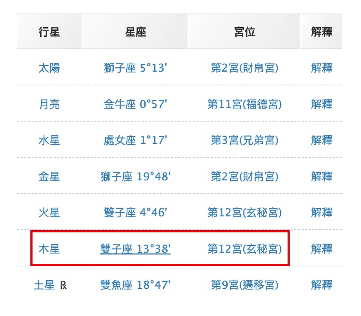 可以先上網到『占星之門』輸入個人資料查詢你的星盤,對照木星在第幾宮位就可以知道囉!
