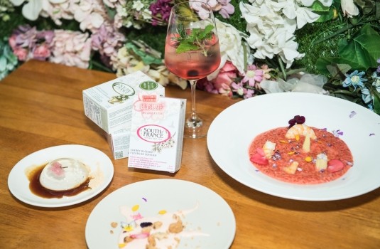 內涵:甜菜奶油蟹肉燉飯、的櫻花水信玄餅、打翻的粉紅生乳酪蛋糕、莓果氣泡沙瓦、湯品及乙顆南法馬賽嫣彩櫻花皂。(上市期間 : 2/9~3/5 )