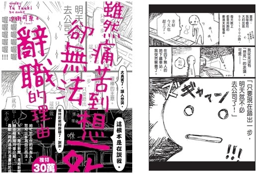 2016年一篇推特文章席捲網路世界,內容敘述一名工作者在連續加班的夜晚萌生了「從月台躍下就不用再去上班」的痛苦心境,高度共感的內容火速引爆網路世界,創下30萬次轉貼與逾3千萬次的閱覽數,該推文後續由出版社成書,並於勞動節前夕推出中文版《雖然痛苦到想死,卻無法辭職的理由》,4月27日預購開始便旋即攻佔網路書店排行榜,催淚度百分百的試閱頁面引起網路瘋傳,連首刷贈送的「辭呈組」也掀起一陣網友熱議。