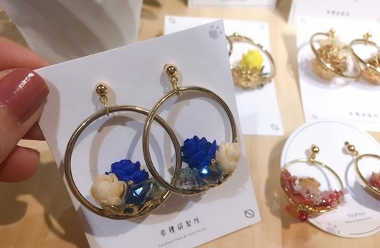 參樓研製所販售的飾品包含耳環、項鍊、戒指、別針、頭飾等,自然清新的設計風格富含自然植栽的元素,運用尤加利葉等素材製作的草葉小菓、飄菓羽葉、飄雪精靈等品項,皆是品牌熱賣的明星商品。喜歡這種風格的女孩們,一定要來櫃上來尋寶一番。