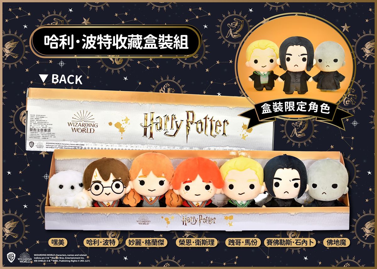 首次在台登場的《哈利波特》Q版人型玩偶,搭配專屬學院校服,還有忠誠的貓頭鷹「嘿美」 。另外推出哈利波特限量優惠盒裝版,可一次收齊主角哈利波特與夥伴們,以及3款獨家隱藏版:馬份、石內卜與佛地魔,全部7款角色的超值組合,預計五月底上市 ,一定要帶回家收藏。