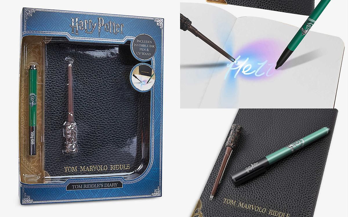 這組湯姆瑞斗筆記本組合,除了筆記本之外,還附了一支史萊哲林學院筆,以及一支魔杖UV光筆!用學院筆寫下的秘密文字,以UV光照射下才能看到,真的好魔幻啊!(可在selfridges.com購入)