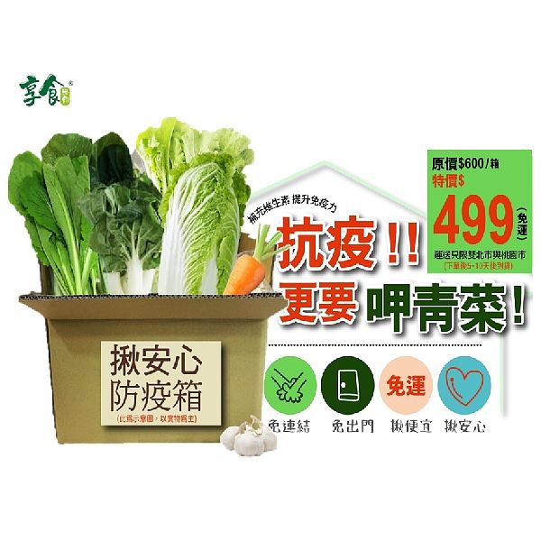 日藥本舖居然也開賣蔬菜了 !不敢上人多的傳統市場或超市嗎?只要在日藥本舖官網就能訂購一箱滿滿的新鮮蔬菜!由產地直送,一箱包含:有機貴松菜、4袋隨機蔬菜、3袋菇類或根莖類、以及辛香料一袋。配送區域限定為雙北市、桃園市,下單後約5~10天到貨。