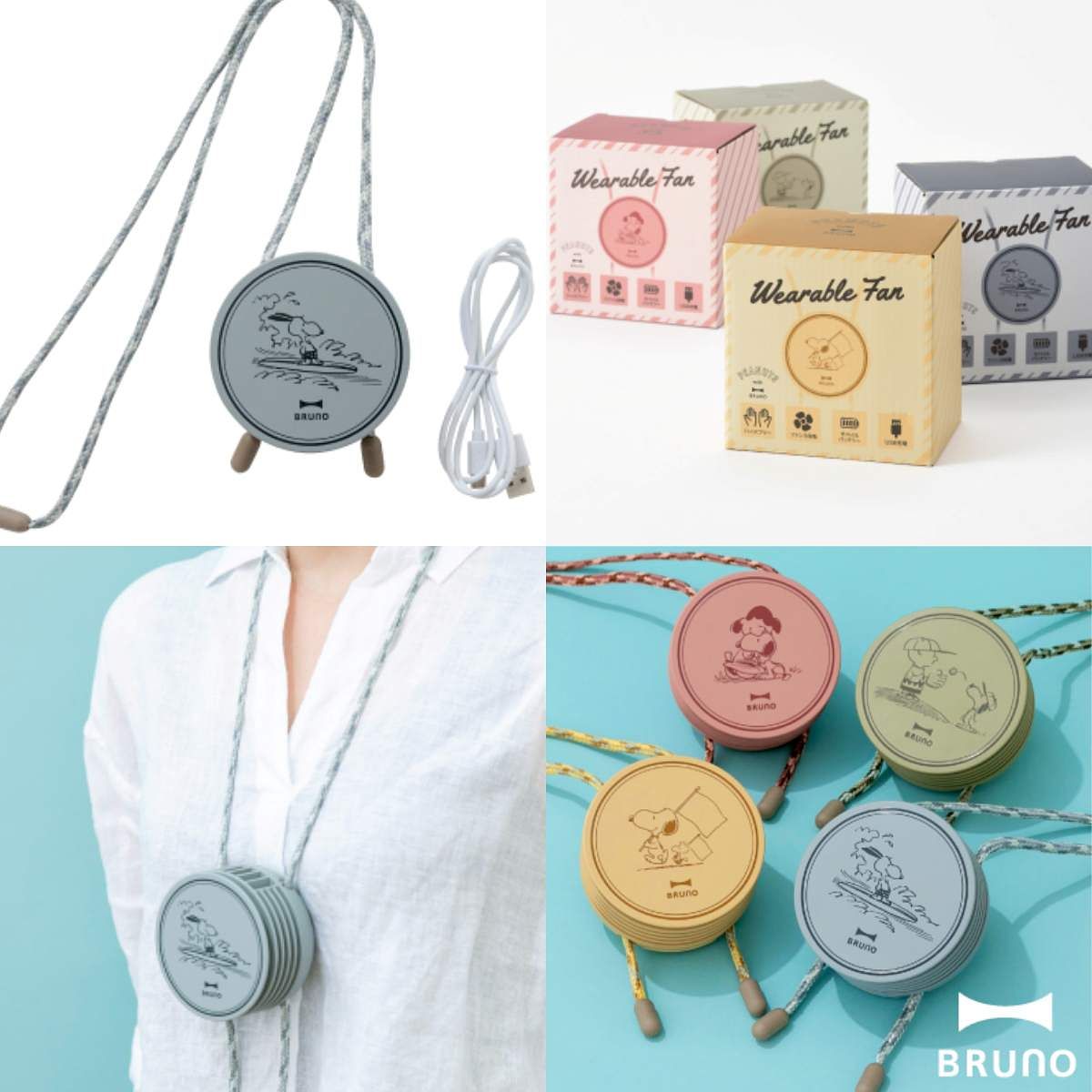 夏天外出好需要的隨身風扇,BRUNO所推出的款式是可以直接掛在脖子上的款式,無須拿在手上,使用上更方便。四款冷淡系的時尚配色,分別是四種不同圖案,每一款都好可愛!