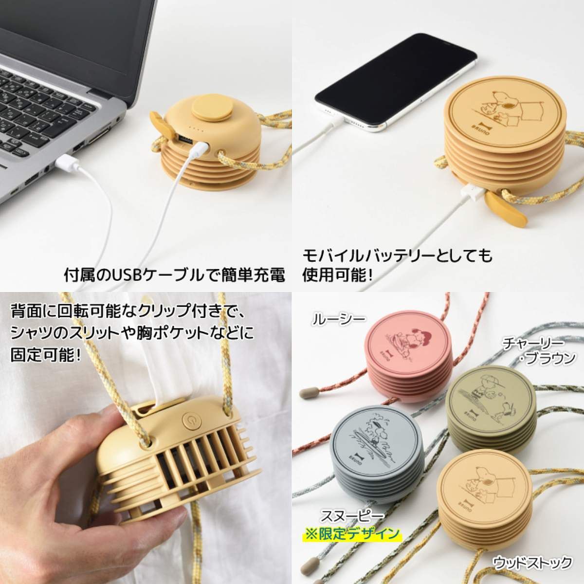 從包裝外盒就是史努比的專屬設計,每款的編織掛繩也是與機身完美搭配,掛在身上就像是個時尚配件,風量有強中弱三段調整。