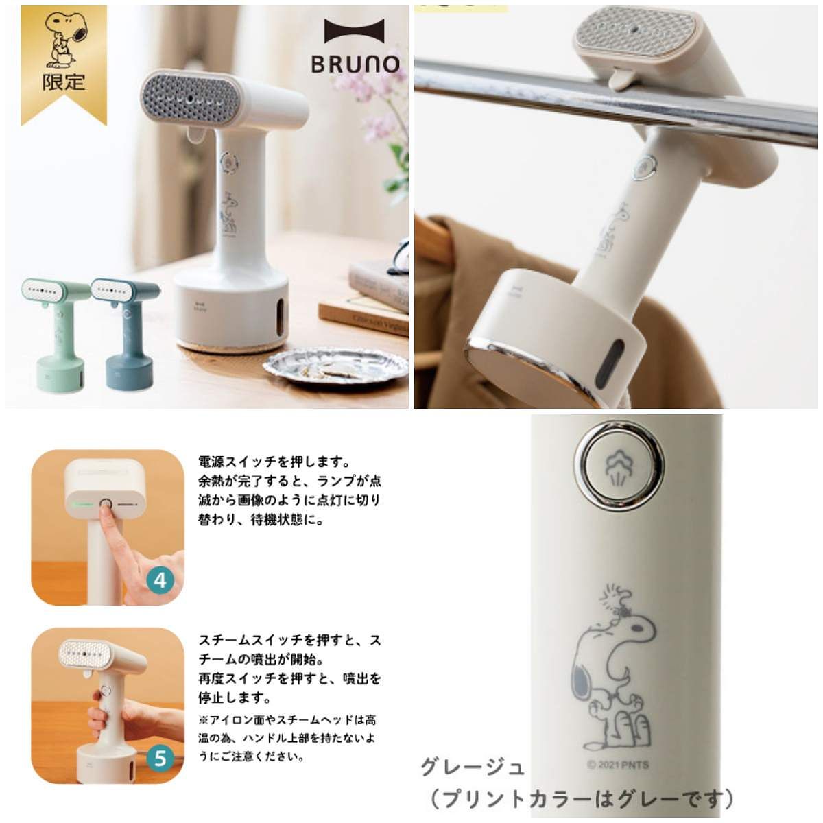 熱賣商品「蒸氣熨斗 」也有史努比版本!擁有比市售掛燙機更輕巧的外型,搭配穩定蒸氣量,強勁蒸氣力道能深入衣物纖維,讓整個熨燙過程都特別順暢又快速。這款限定聯名共有三款色選:淺米灰、灰藍、與薄荷灰,可愛的史努比以灰色線條現身在手把處,低調得很顯眼~