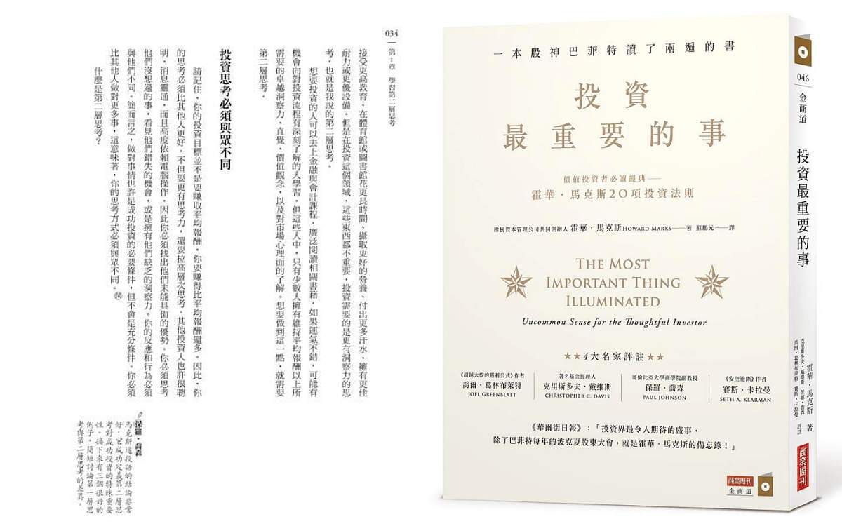 與巴菲特齊名的投資專家、也是橡樹資本管理公司共同創辦人-霍華.馬克 ,寫給客戶的「投資備忘錄」據說媲美波克夏的股東大會,對股市投資市場的洞察力和「第二層思考」投資哲學備受推崇。