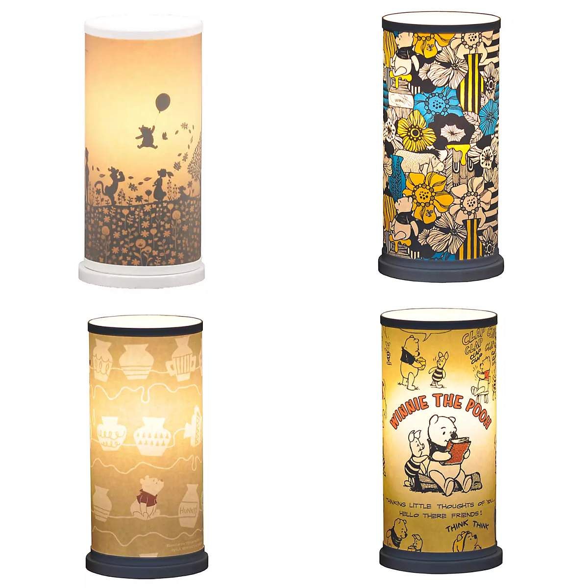 桌燈一共有四款不同設計的圖案,外層是高質感的純棉光澤紙包覆燈泡,燈泡從裡透出光芒,映襯可愛的維尼。