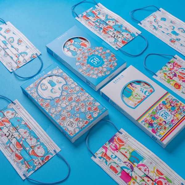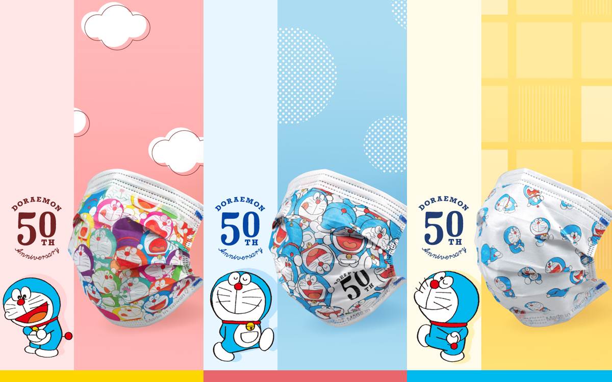 日本漫畫哆啦A夢魅力橫跨多個世代,佔據許多消費者童年生活的重要回憶,為慶祝《哆啦A夢》漫畫連載 50 週年,特別以50種不同表情與姿勢的哆啦A夢構圖,推出聯名紀念醫療口罩。第二波經典50哆啦以經典俏皮、搞笑賣萌的哆啦A夢為主題設計;多彩50哆啦則是以時尚、繽紛多彩的哆啦A夢,成為眾人的目光焦點;而紀念50哆啦以滿版的哆啦,象徵實在幸福的祝福意涵,不僅讓許多大朋友滿足童年回憶,還能與家中的小朋友溫馨同框,一起佩戴同款醫療口罩,一來能緩解防疫生活的苦悶心情,二來還能兼顧療癒與時尚。