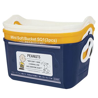 三色組合的史努比置物籃,除了正面有查理布朗和史努比的圖案,側面的簍空提把居然是史努比的臉,完全可愛入心。柔軟又防水的塑膠材質,容量有1L,除了適合放在房間,也適合放在浴室收納瓶瓶罐罐。一組有三個顏色,能分別放在不同區域超棒的!