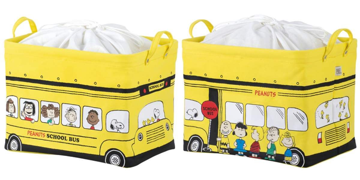 花生家族的巴士是很經典的設計,化身成為實用的收納籃,還附有提把,置物或者提物都方便。附有束口的設計,可以防塵又可以遮掩雜亂,收納玩偶或者衣物都沒問題。