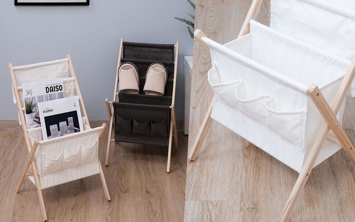 超美無印風雜誌架!除了放置雜誌書本之外,也能收納一些生活日常小物,米白色調搭配亞麻布質,根本無印風定番。