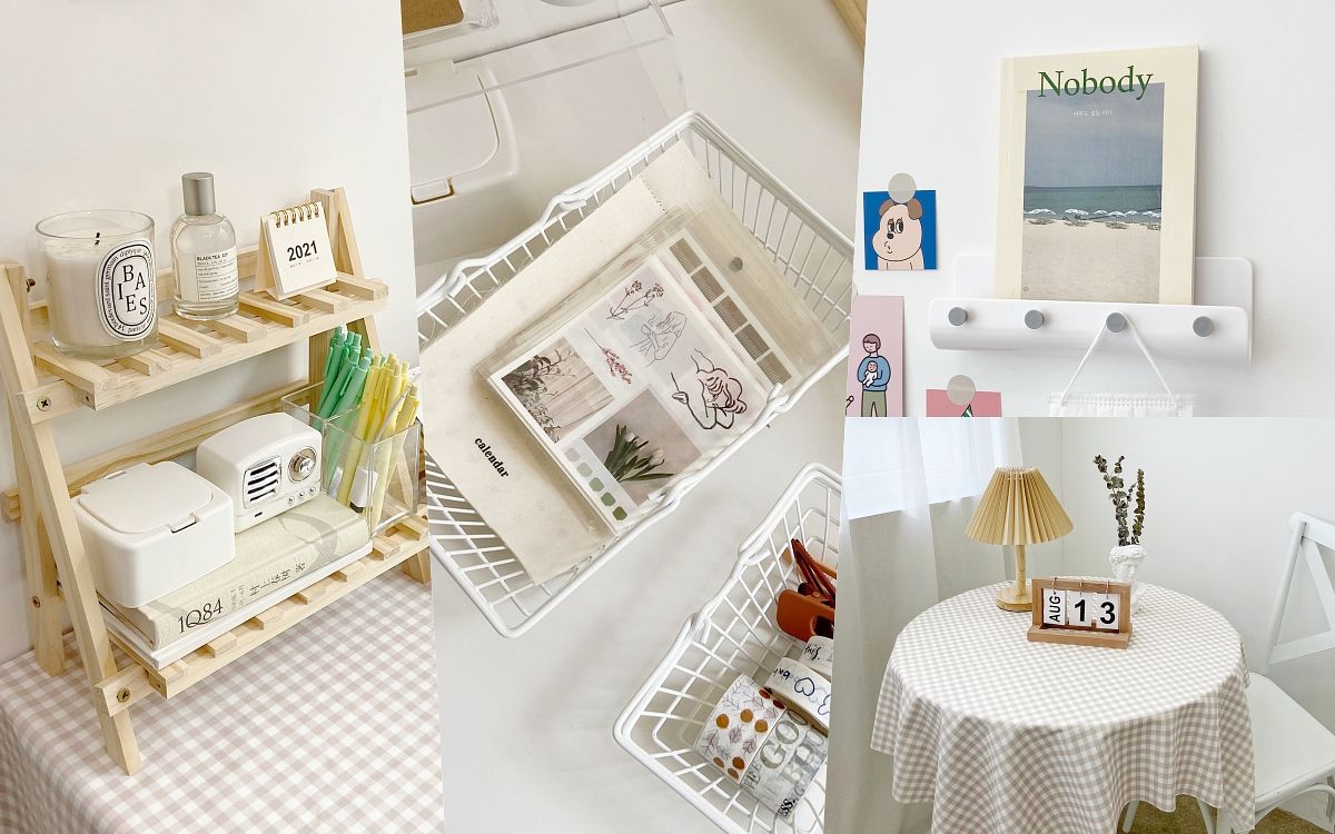 整間店都充滿韓式小清新質感,白色的收納架、質感溫潤的收納籃與小桌燈,另外也有非常多適合拿來佈置的小單品,視覺效果棒、價位入手起來也完全不負擔。