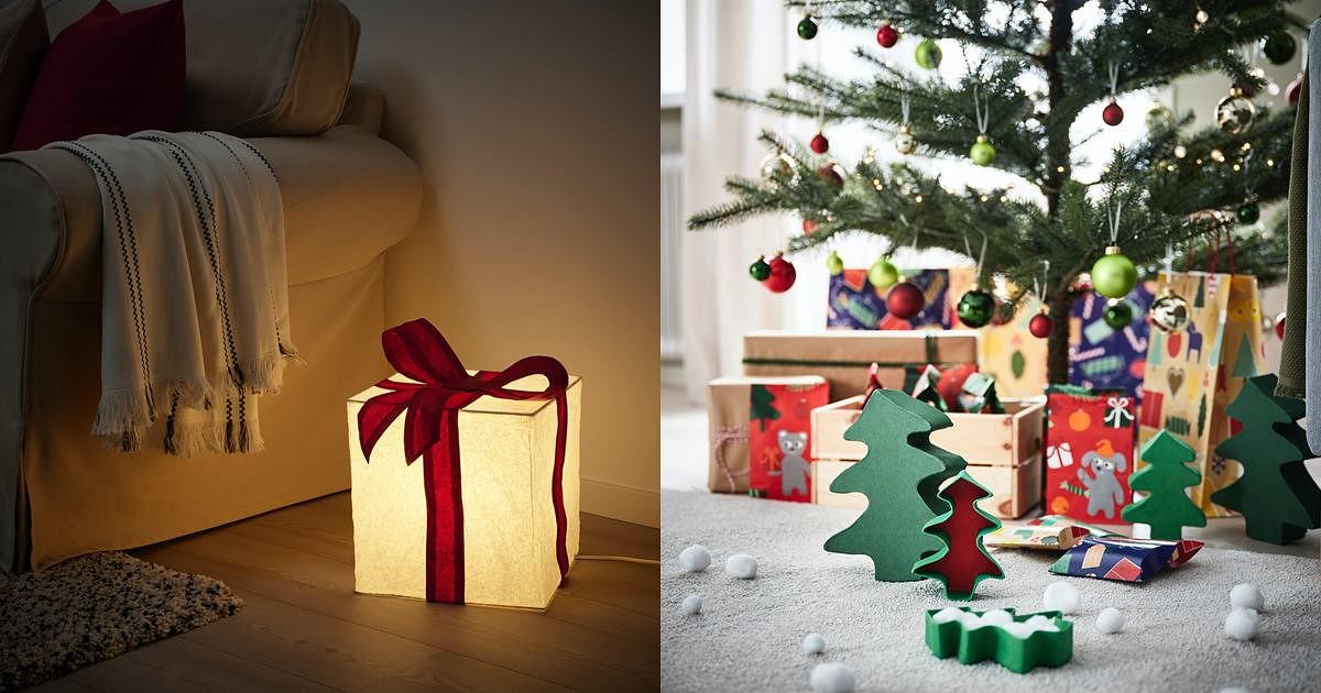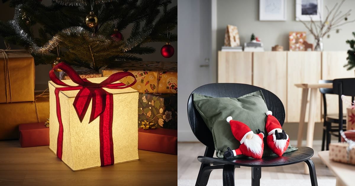 聖誕樹下來點燈光佈置讓氣氛更加分,STRÅLA裝飾桌燈以禮物盒造型與紅色緞帶設計,外型亮眼好看,又能增添節慶氛圍,讓孩子們更期待交換禮物的到來。還有VINTER 2021填充玩具,猶如IKEA經典雙手愛心靠枕的聖誕老人版,簡單放在座椅或沙發上,就能增添空間聖誕童趣感!