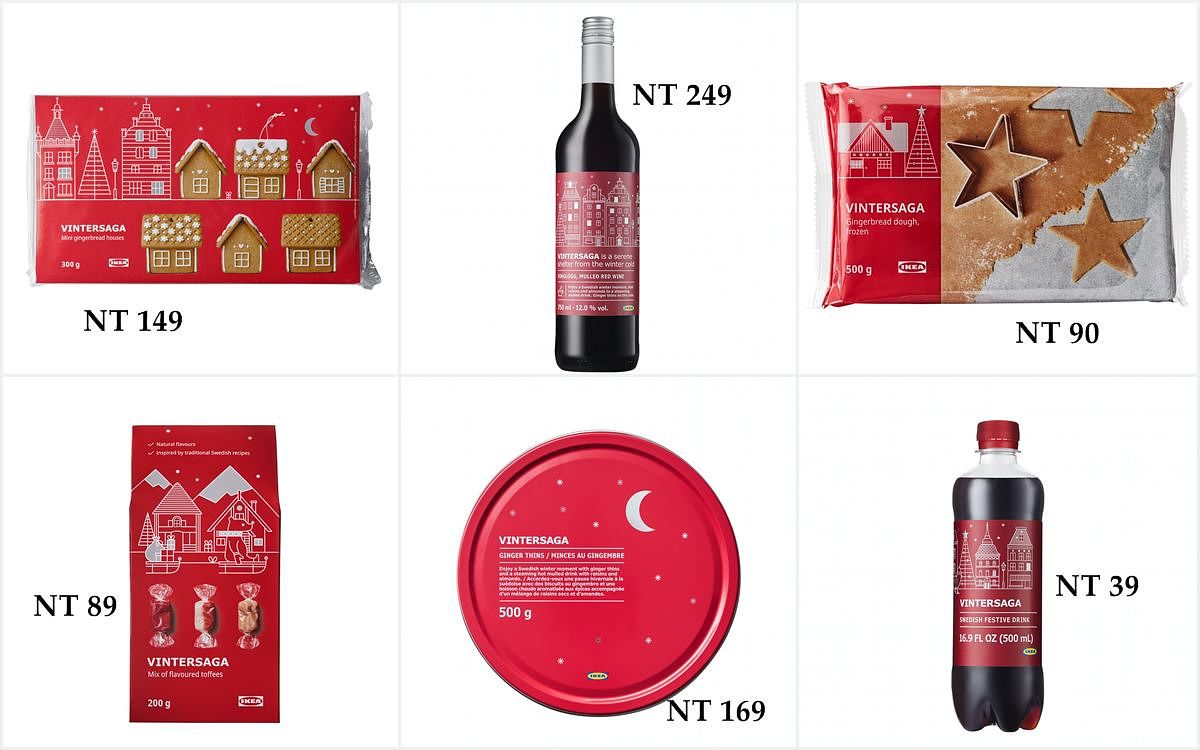 聖誕節當然少不了薑餅,除了現成的薑餅禮盒,IKEA每年都會推出各式薑餅DIY組合,包括薑餅屋DIY、有著聖誕薑餅人與麋鹿的綜合薑餅,甚至還有薑餅麵團,讓親子一起創造出各式造型的薑餅屋。再搭配聖誕節絕不可少的IKEA VINTERSAGA瑞典傳統風味飲料及聖誕紅酒,讓家裡充滿薑、肉桂和丁香的溫暖味道。全新推出的VINTERSAGA聖誕綜合風味太妃糖,內含3種傳統的瑞典聖誕風味:熱紅酒、薑餅及波爾卡薄荷,讓你在台灣也能品嘗瑞典聖誕風味的太妃糖。另外還有,去年好評熱銷的「IKEA聖誕派對外帶餐 」,今年隆重回歸,推出包含:迷迭香烤全雞、雞肉紅醬千層麵、海鮮總匯沙拉、維也納香腸、大三元吉利丸、蔬菜馬鈴薯餅、野莓起司蛋糕還有氣泡飲料。即日起就能至IKEA瑞典餐廳預購,到12/31為止。11 /30前訂購還享早鳥優惠價$1,680元 (原價$2,160元),在家就能享用美味又超值的聖誕大餐,不用到外面人擠人,千萬別錯過!