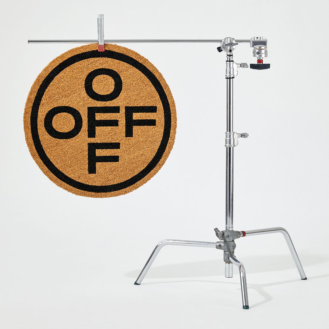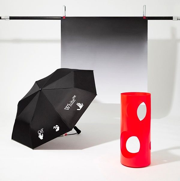 從玄關開始,為滿足不同空間及需求,推出三種不同尺寸規格的門墊。將一般傳統門墊重新演繹,印上各種代表Off-White™ 的徽標:”游泳者” logo、手掌圖案以及Off 字母排列字樣;在玄關另一處,設計了傘架,標準圓柱形並加入Off-White 縷空挖洞設計,顏色部分則有為黑、橘兩色;為了讓此區塊更加完整,並推出白、黑、灰共三色的雨傘,外層均印有”游泳者” logo,裡面印有令人會心一笑的標語” insert sunshine here (讓陽光照進來)”,即使在下雨天也能保持好心情。