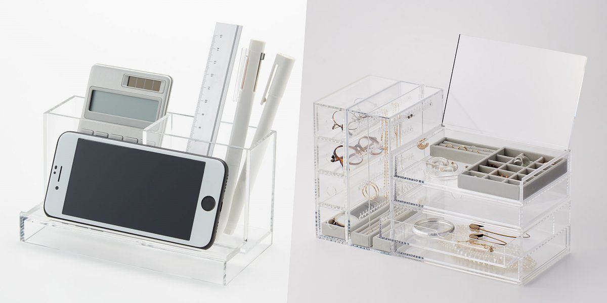 第6名-壓克力收納系列,40-1,190元:不易刮傷的壓克力材質,內容物一目瞭然,可用於文具、美妝品、飾品等小物收納的多用途收納盒。透明的質感,讓收納成為桌上的風景。