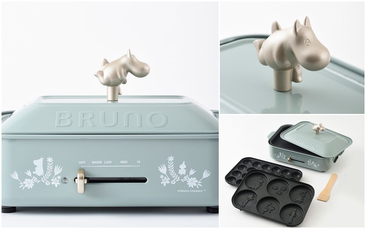 Bruno所推出的嚕嚕米多功能電烤盤,柔美的淡霧綠機身,詼諧且幽默的Moomin躍上電烤盤的蓋上,立體的造型握把設計可愛中又不失質感,可以烙烤出嚕嚕米所有家人朋友的烤盤也絕對是一大賣點,就算不是嚕嚕米粉的人也瞬間被圈粉!